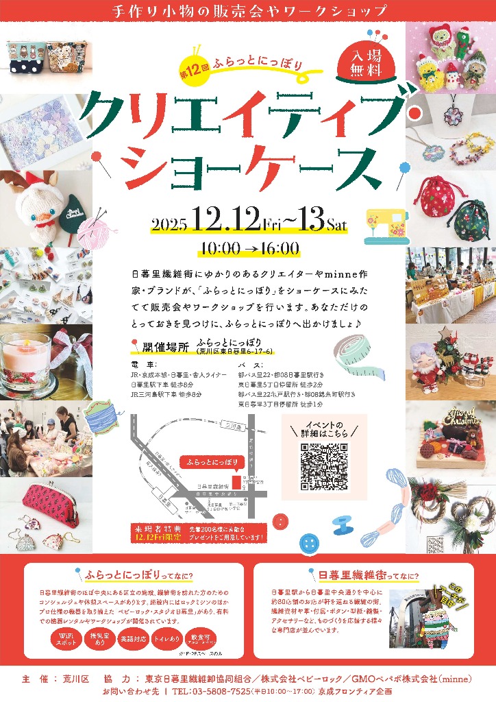 12月12日・13日の2日間、荒川区東日暮里6-17-6「ふらっとにっぽり」にて開催します。